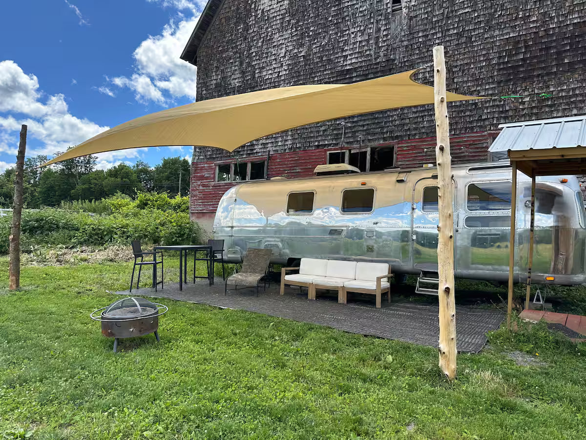 Come stay in our renovated Airstream trailer with beautiful farm views, comfy outdoor seating and dining, a full kitchen and bath, and Egyptian cotton and linen bedding. You have everything you need for a luxurious retreat in nature. See more details on Airbnb at the link below.